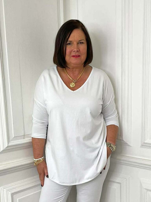 V-Neck Scooped Hem Top - White