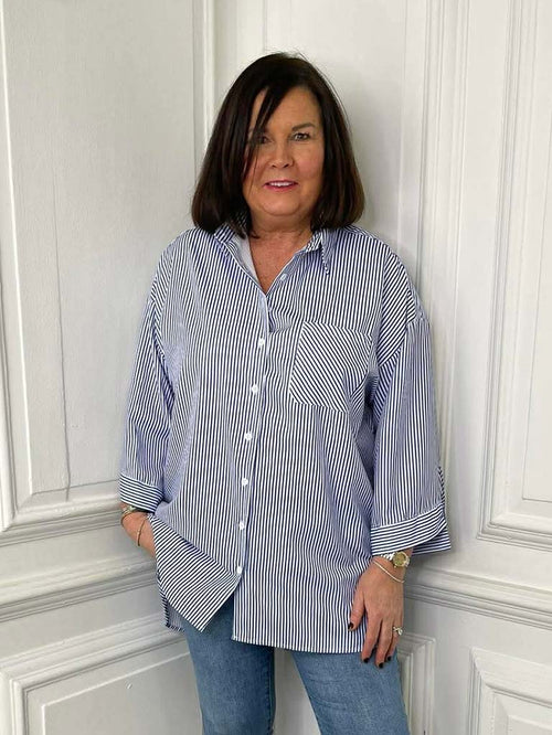 Striped Boyfriend Shirt - French Navy