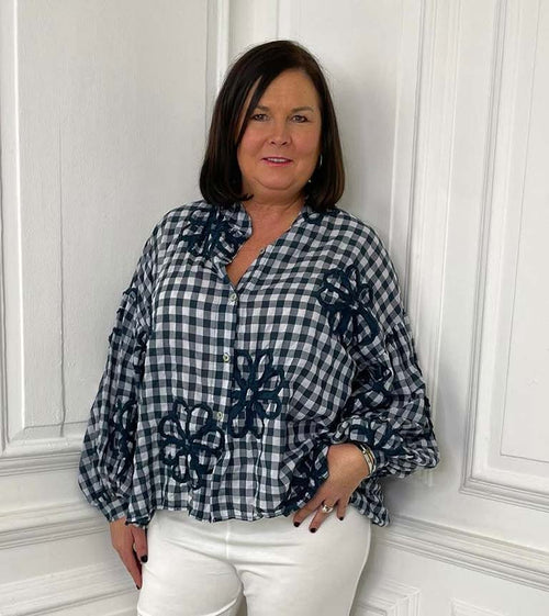 Gingham Floral Shirt - Navy