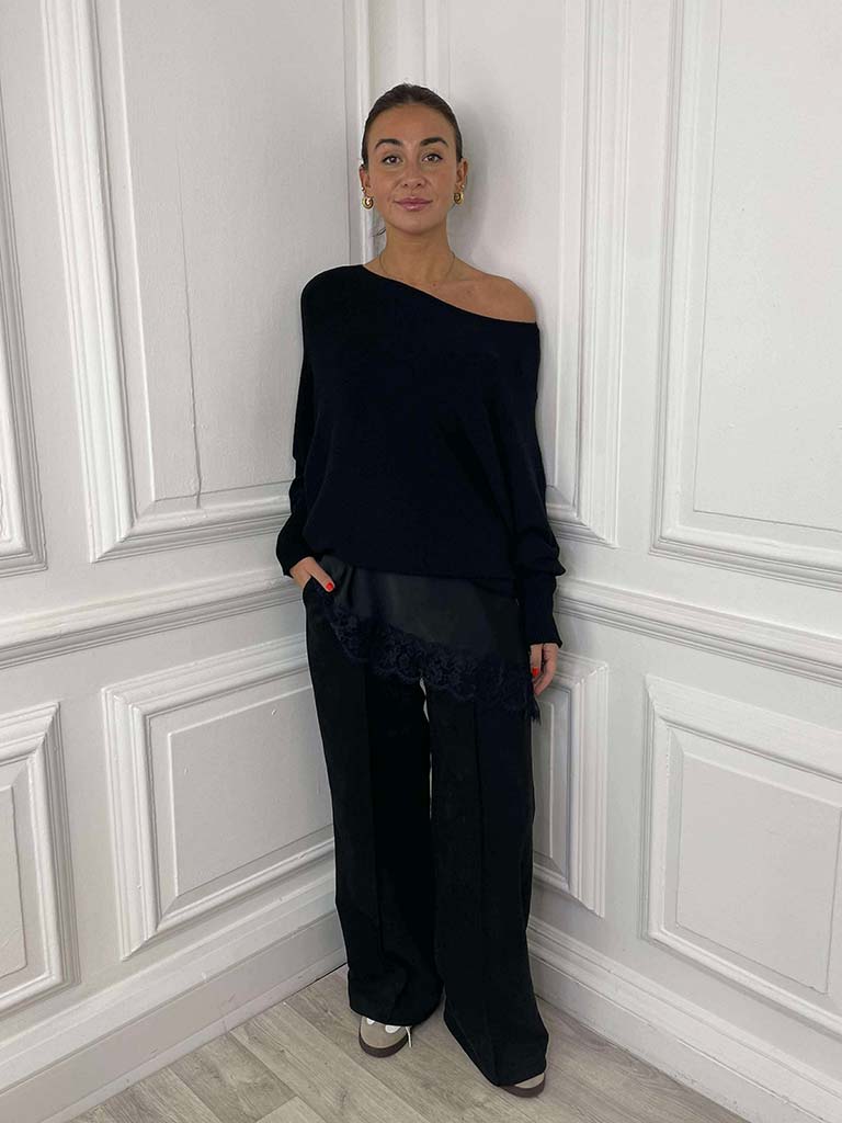 Lace Trim Asymmetric Cami Top. The perfect shape for layering under knitwear!