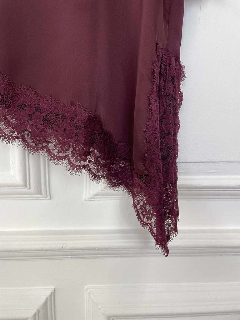 Lace Trim Asymmetric Top - Burgundy