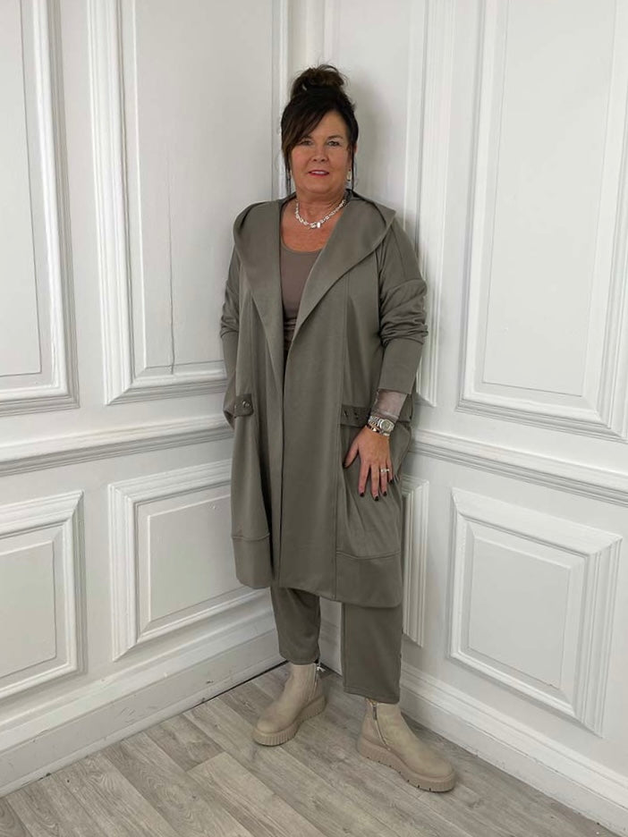 Malissa J Jersey Eyelet Hooded Jacket - Mushroom