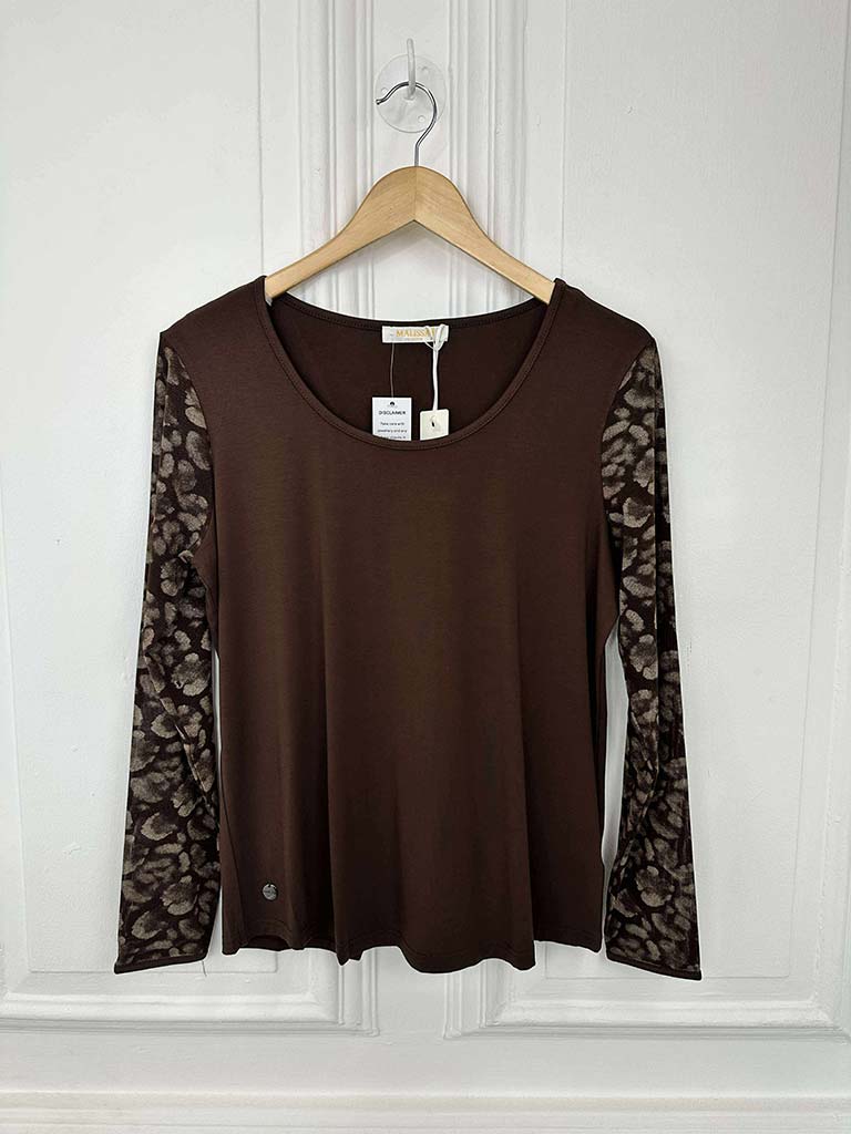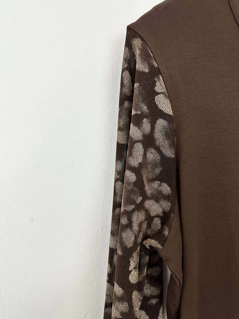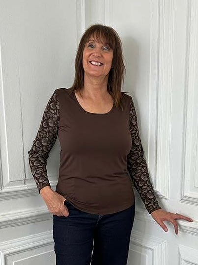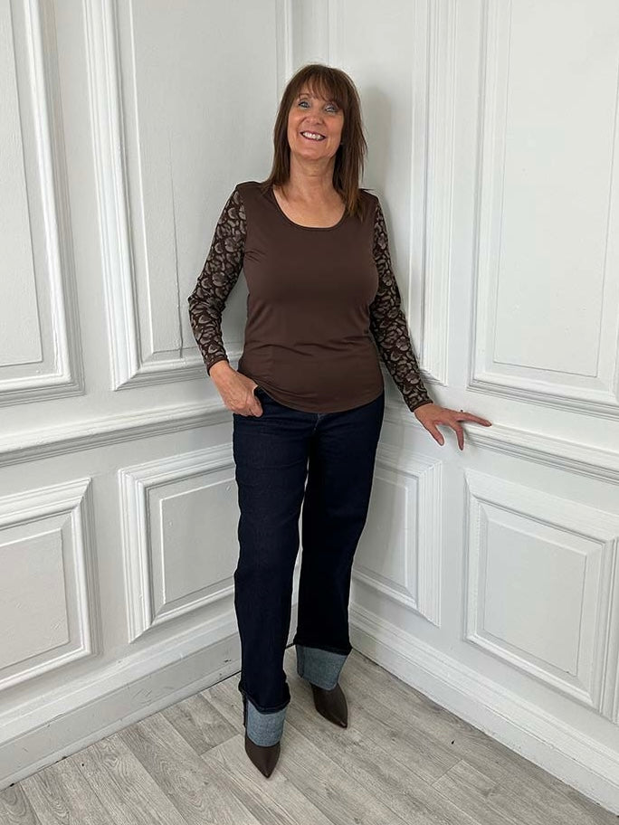 Malissa J Mesh Sleeve Top - Brown