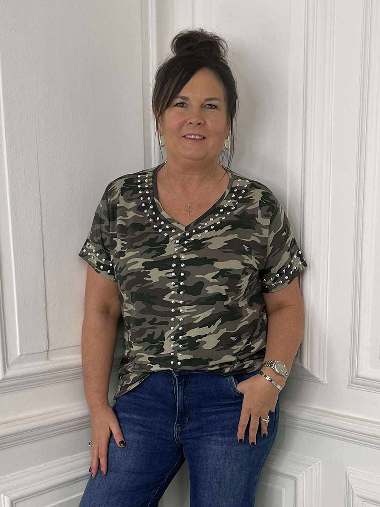 Malissa J Studded Tee - Camo