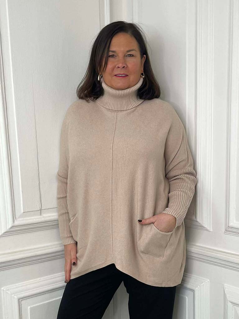 - Ribbed polo neck