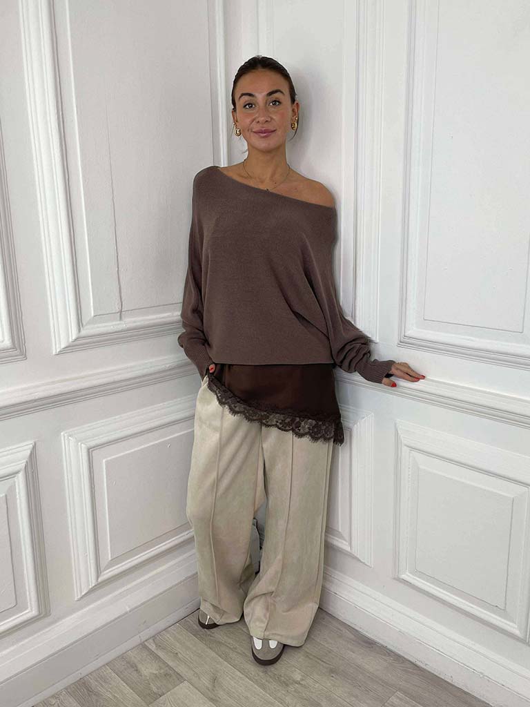 Suede Feel Joggers - Ecru
