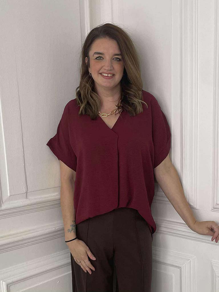 V-Neck Pleat Front Top - Burgundy