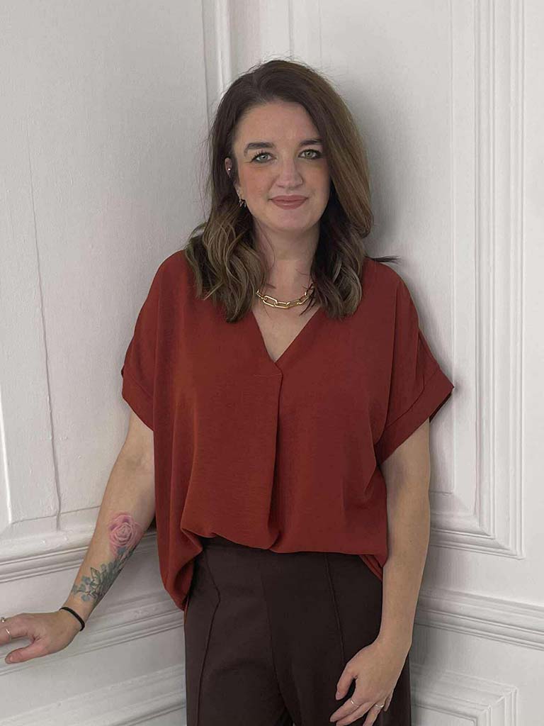 V-Neck Pleat Front Top - Rust