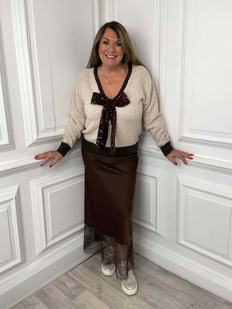 - Chocolate brown sequin bow