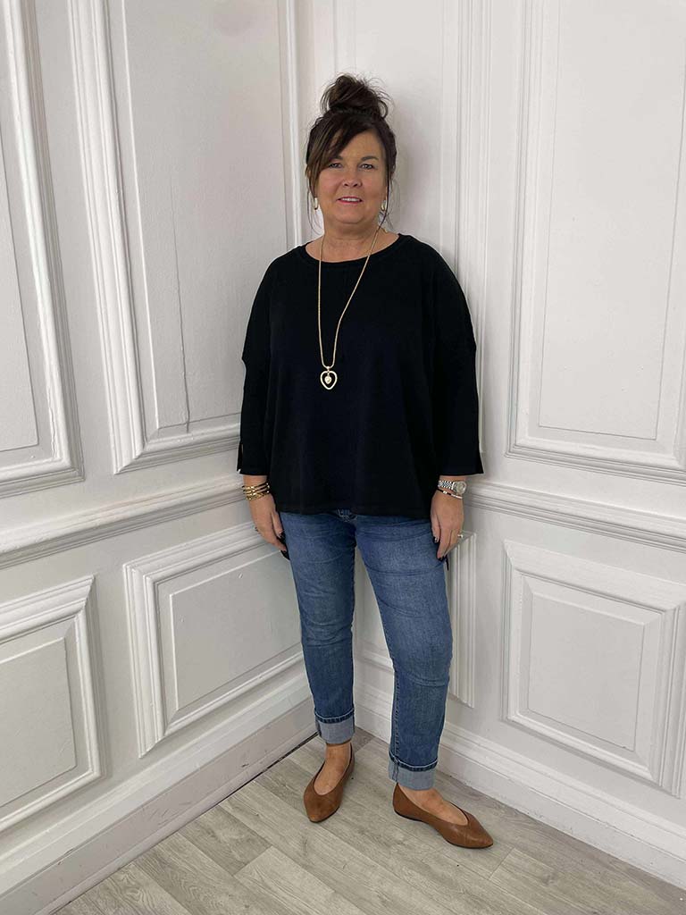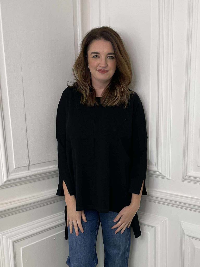 Sarah, size 10-12, 5ft 4 (wearing S/M)