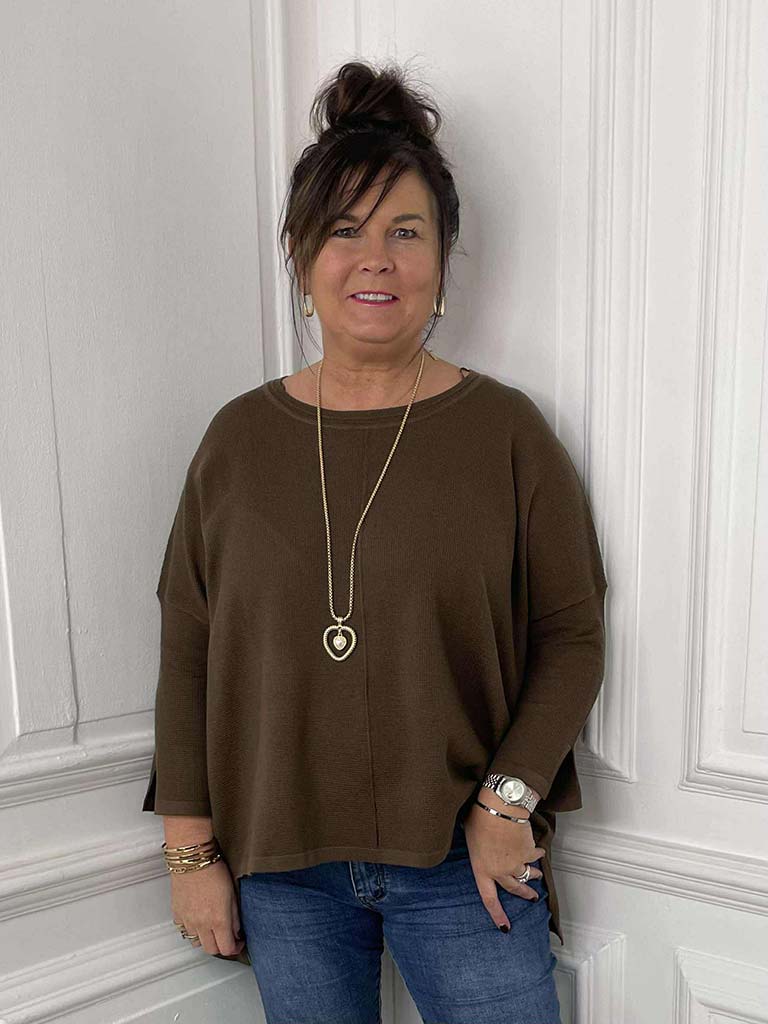 Waffle Drop Back Knit - Chocolate